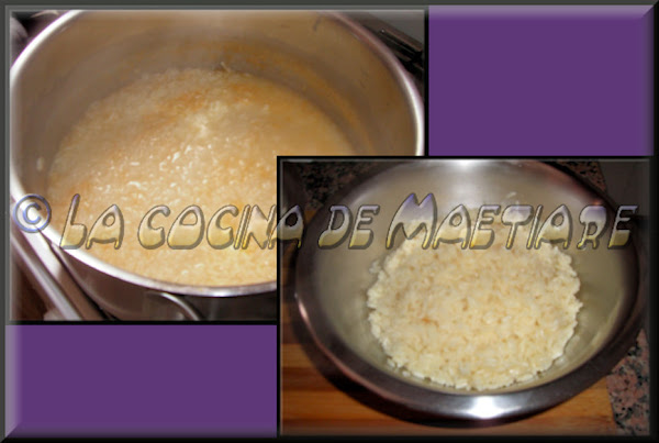 Trás éste proceso seguramente el arroz estará ya cocido. Procederemos a escurrirlo de su líquido.