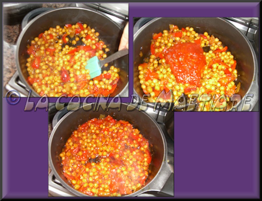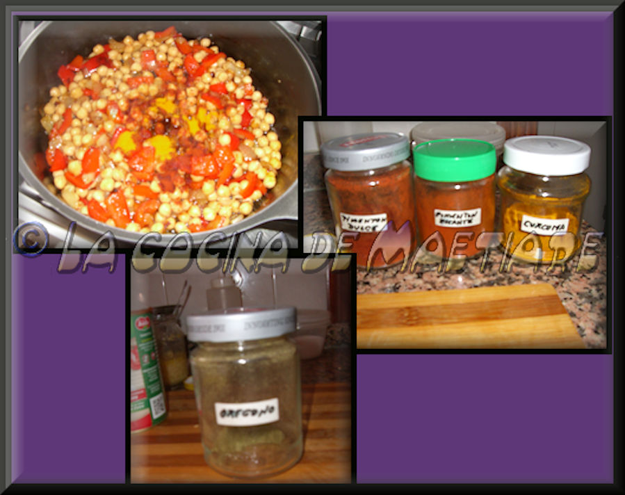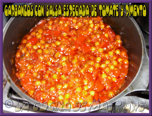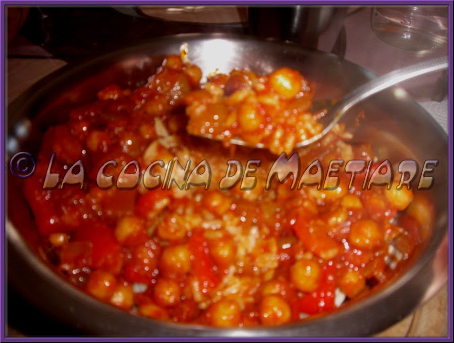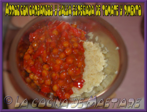 Arroz con garbanzos y salsa especiada de tomate y pimiento