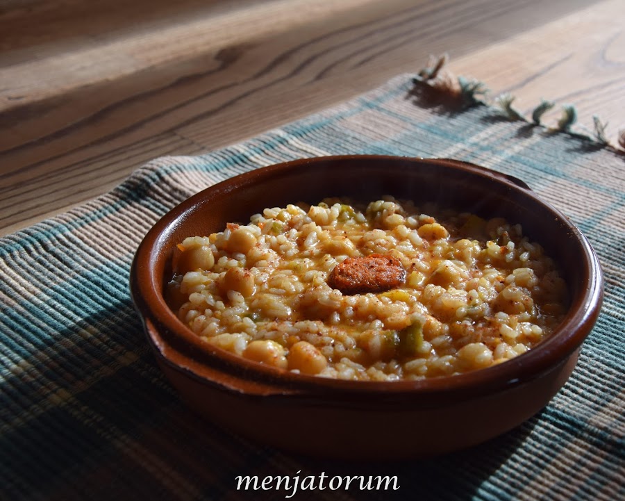 Con este frío apetece un plato de cuchara, de esos platos humeantes de cocina tradicional de invierno, que nos sirven para calentar el cuerpo y el alma.Este arroz con garbanzos y sobrasada es una receta simple y fácil de preparar,que gusta a todos en casa.