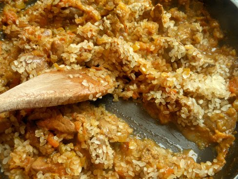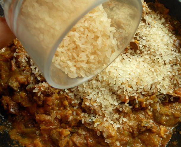 Después vierte el arroz y vuelve a remover durante 1 minuto aproximadamente.