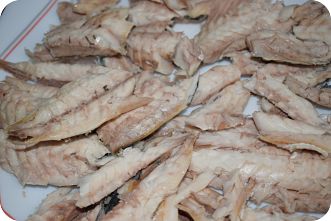 Una vez fríos, saca los lomos quitando todas las espinas que puedas. Reserva.