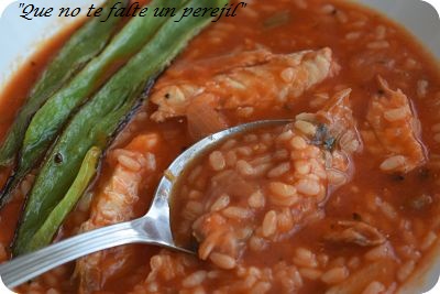 Hace tiempo publiqué un arroz con tomates y pimientos fritos que es la base de la receta de hoy. Mi abuela lo bordaba, a mi abuelo le encantaba y mi madre supo enseñármelo. También quiero recordar los fideos con caballas pues son una variante de la receta de hoy.