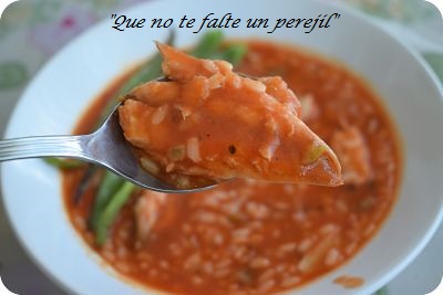 En los últimos minutos de la cocción del arroz, introduce el pescado, remueve muy suavemente para no deshacerlo y deja que cueza todo juntos unos 5 minutos para que el arroz tome el sabor del pescado.