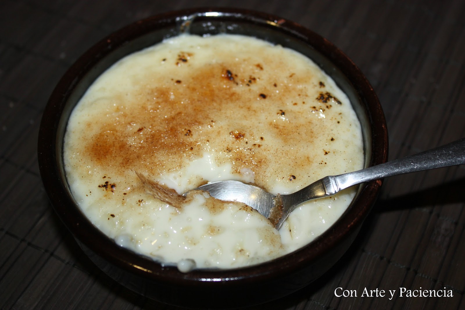Qué buen postre traigo hoy, arroz con leche, todo un clásico que siempre gusta a todos y si es muy cremoso para que seguir hablando. Os enseño otra forma de hacerlo que requiere, entre otras, paciencia . Además, lleva un chorreoncito de anís y como opción una capa de azúcar crujiente tostada (última foto).