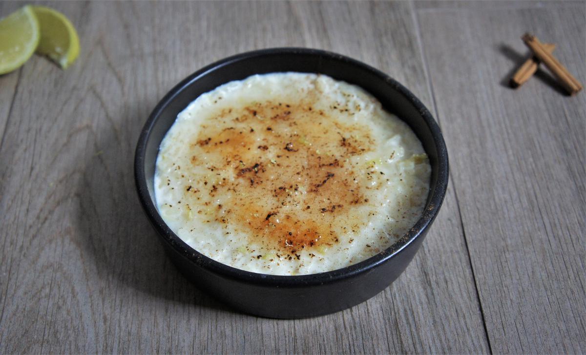 Justo antes de servirlo echamos un poco de azúcar encima de cada vasito de arroz con leche y lo quemamos con ayuda de un soplete.