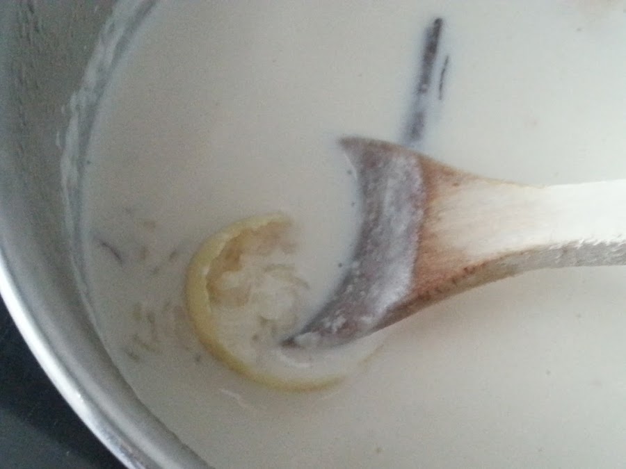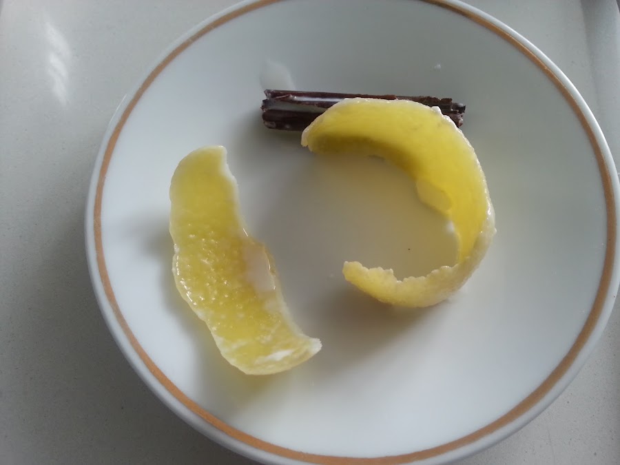 2. - Cortamos dos trozos de la corteza de un limón lo añadimos a la leche.