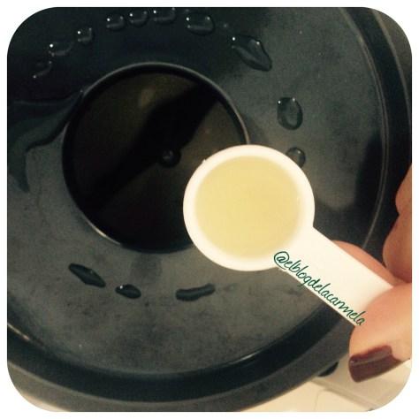 1 cucharadita pequeña de estevia pura líquida ( de venta en herbolisterias) . Podéis poner tb sirope de maple pero yo finalmente me decanté por la estevia menos calórica ( o nada calórica mejor dicho)