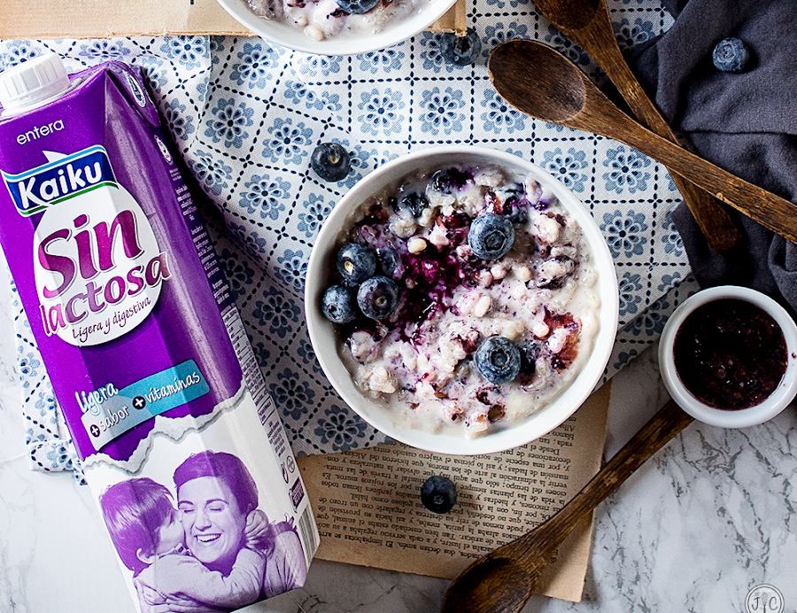 Para hacer este arroz con leche sin lactosa y sin azúcar con arándanos he utilizado leche entera Kaiku Sin Lactosa porque necesitaba conseguir una textura más cremosa que la que conseguiría con otro tipo de leche (desnatada o semidesnatada), aunque hubiera salido igual de bueno seguro.