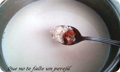 Ahora es el momento de incorporar el arroz, la vainilla, el resto del azúcar y deja que siga cociendo hasta que el arroz esté tierno y en su punto.