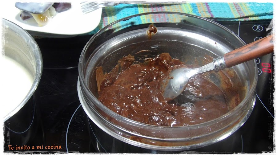 Ahora ponemos un bol al baño maría con el chocolate y tres cucharadas de agua.