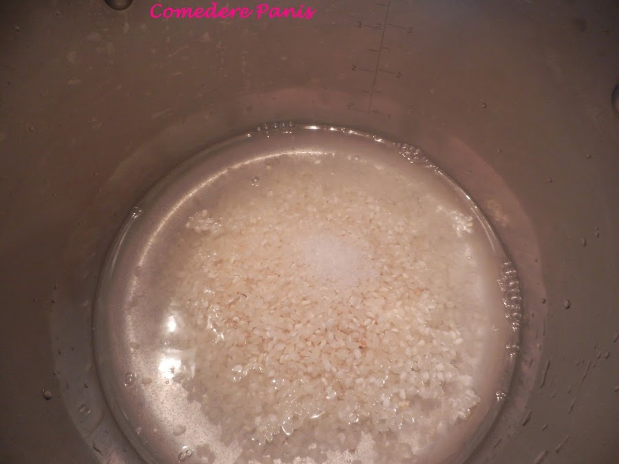 Comenzamos colocando en un caldero a fuego lento el agua, el arroz y la pizca de sal. Cuando notes que el arroz comienza a cocinarse y el agua se absorbe a los 15 minutos aproximadamente, le añadimos la leche poco a poco de unas tres o cuatro veces y removiendo para evitar que el arroz se pegue al caldero.