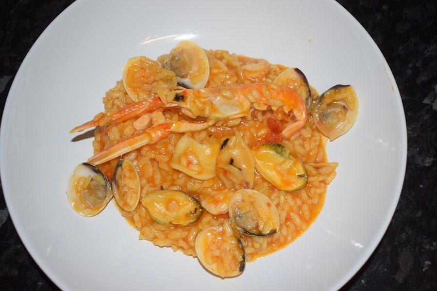 Y ¡listo!, aquí tenemos un delicioso plato de arroz con marisco.