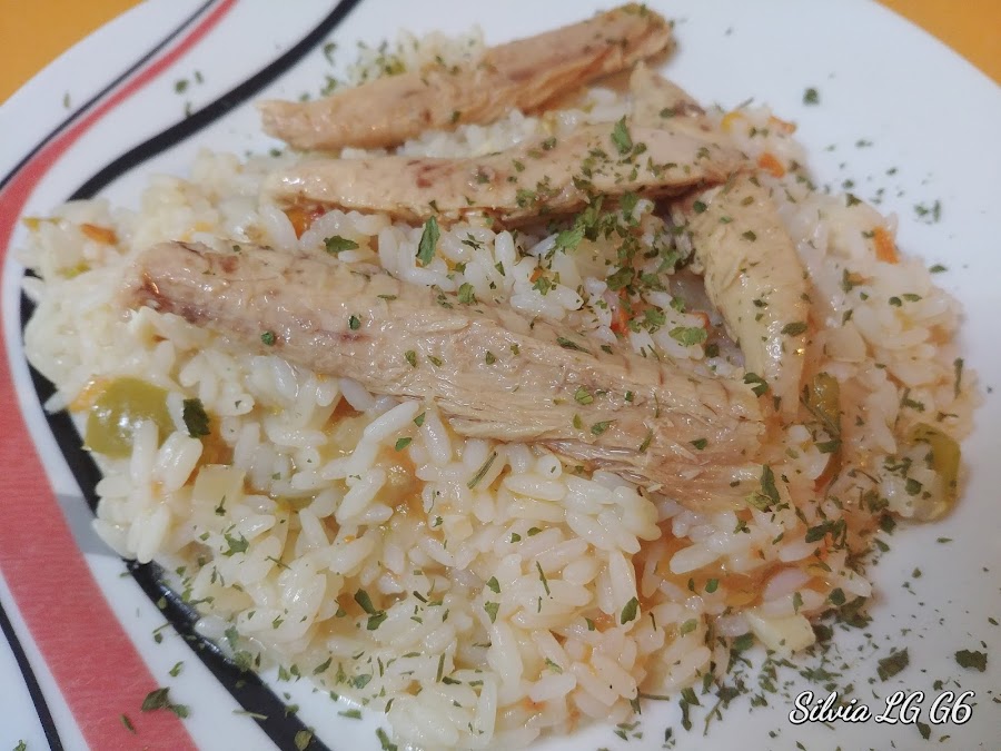 Dejamos que el arroz se haga. Unos minutos antes de servir añadimos a la sartén la melva. Se mezcla todo y se sirve.