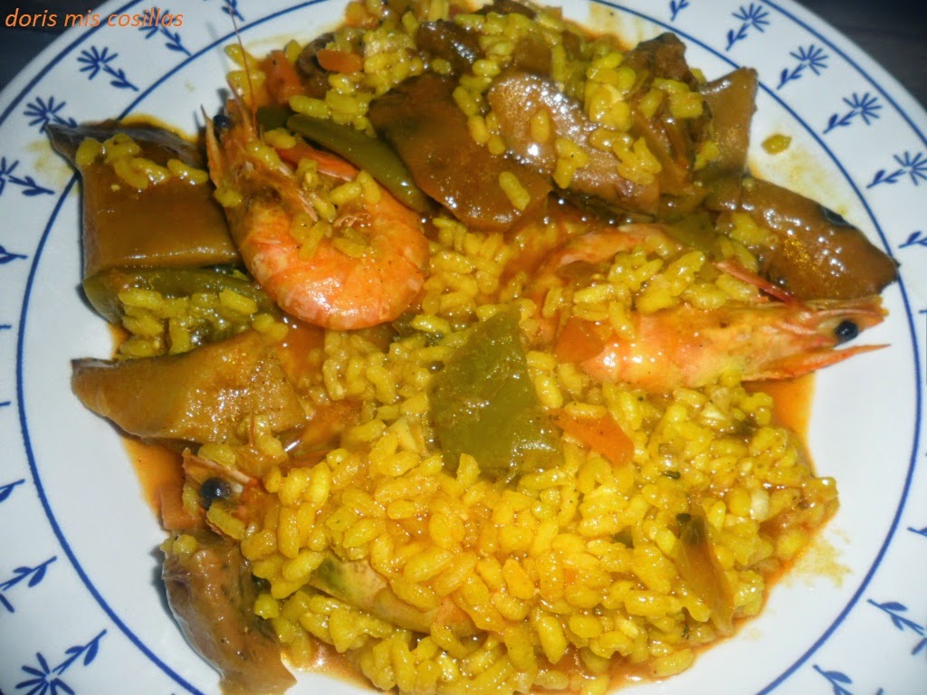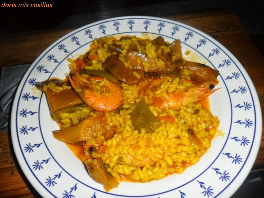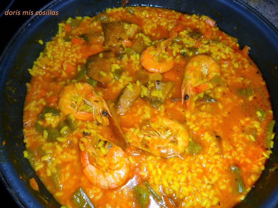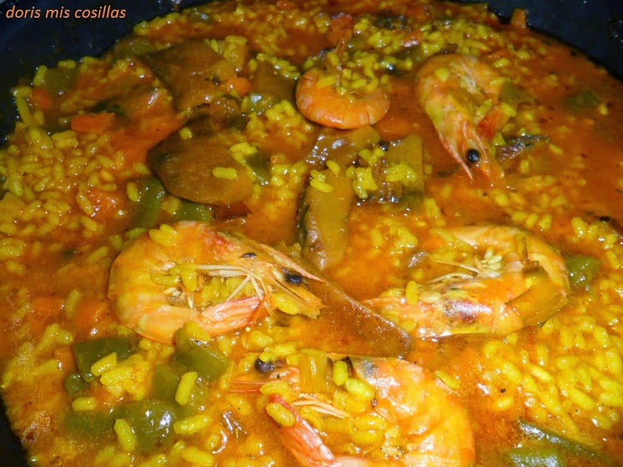 Rectificamos de sal y pimienta molida, dejamos cocer unos 20 minutos sacudiendo la paellera de vez en cuando para que no se pegue al fondo.Si hiciera falta, agregar un poco de agua caliente de a poco.