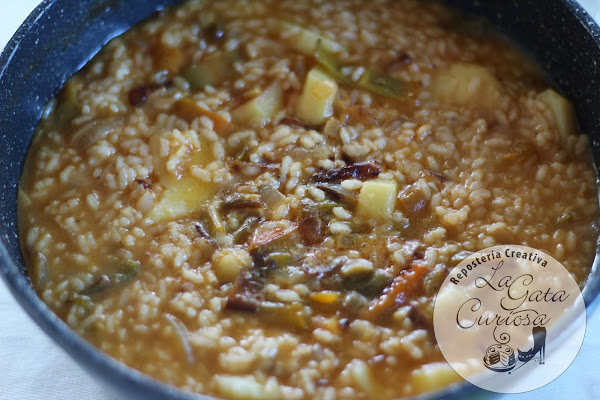 Hace tiempo que oigo hablar de la lúa, al parecer es un guiso de arroz con patatas y bacalao que hacían los jornaleros gallegos que venían a segar por la noche. Como no he conseguido que ningún peñarandino me invite a comerla al final con las indicaciones de Juan Carlos Martín Cifuentes he preparado mi Lúa particular o mi versión de La Lua.