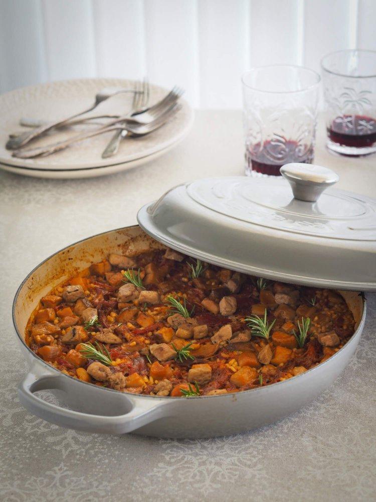 Además, esta receta es muy especial, ya que la podrás encontrar en el catálogo de otoño-invierno de Le Creuset, donde nos presentan el nuevo color de la temporada: el mist grey. Creo que es un color súper elegante y muy bonito. Has visto que bien queda la cocotte en la mesa?