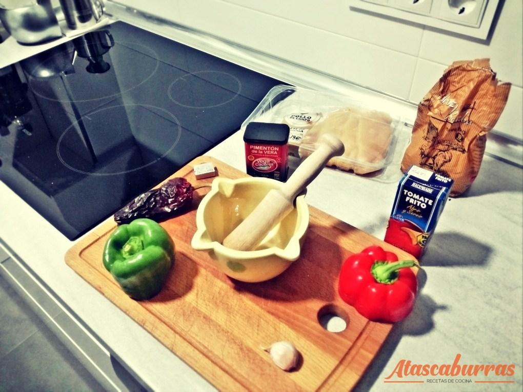 Ojito con esta receta de cocina!Es el típico domingo de invierno, hace un frío de narices, y con el pijama puesto se está de maravilla. Va llegando la hora de comer, el hambre y las ganas de bajar a comprar algo de comer van creciendo de forma inversamente proporcional. Se abre el frigorífico y se vuelve a cerrar, así sucesivamente hasta que… al pijo! Un arroz con pechugas (había que gastarlas ya, que el paquete estaba abierto) y dos medios pimientos que me quedaban del otro día.