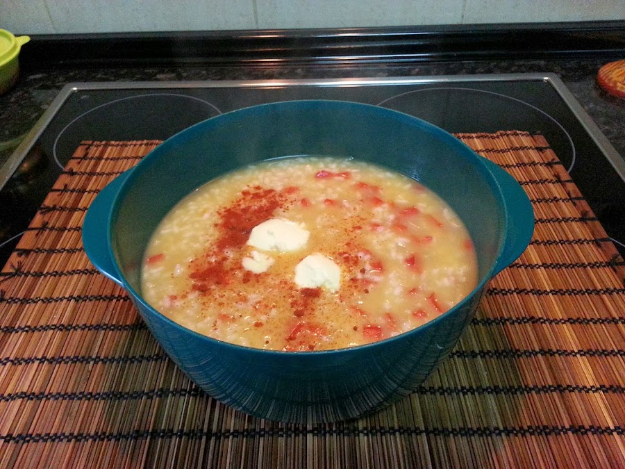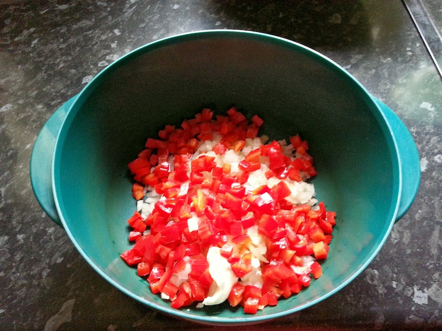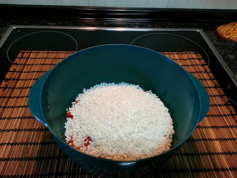 Arroz con pimientos en microondas