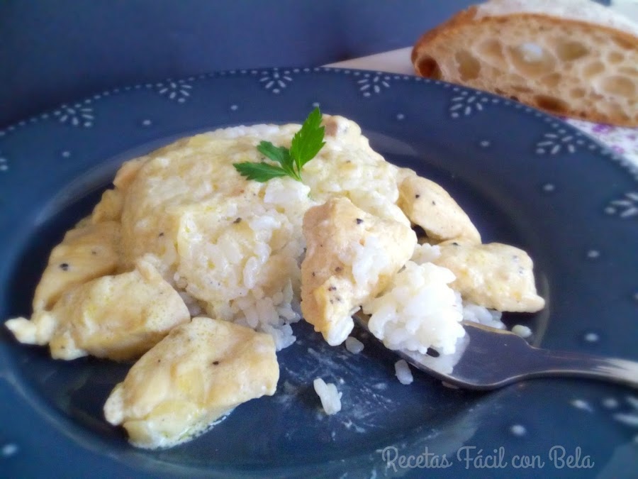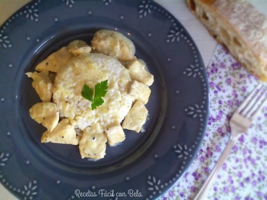 Servir el arroz y por encima el pollo con la salsa ¡Que rico!