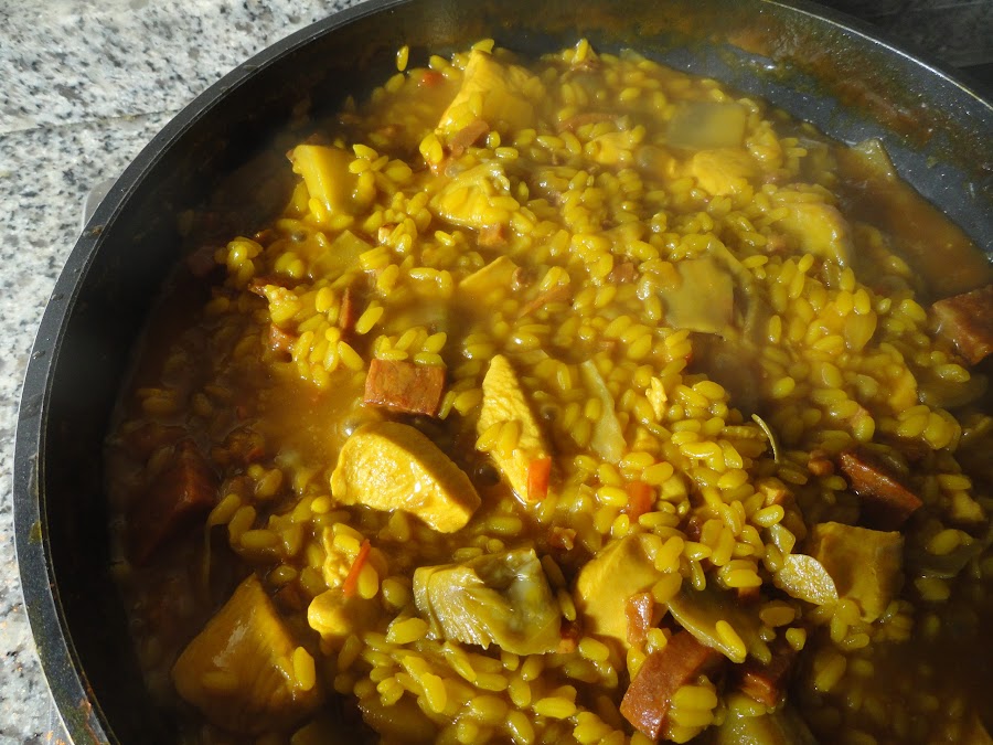 azafrán (yo no tenía en ese momento y puse colorante, pero con unas hebras de azafrán debe quedar mejor)