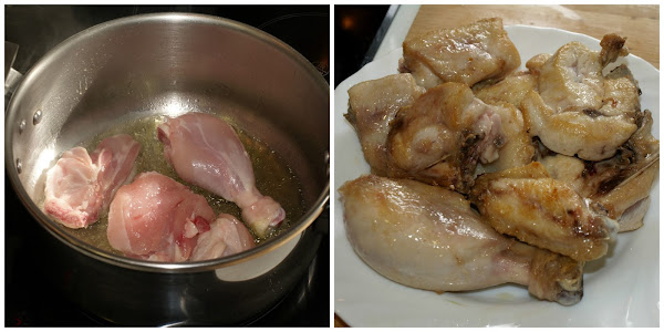 1/2 pollo en trozos sin piel (salvo las alas que las dejamos tal cual)