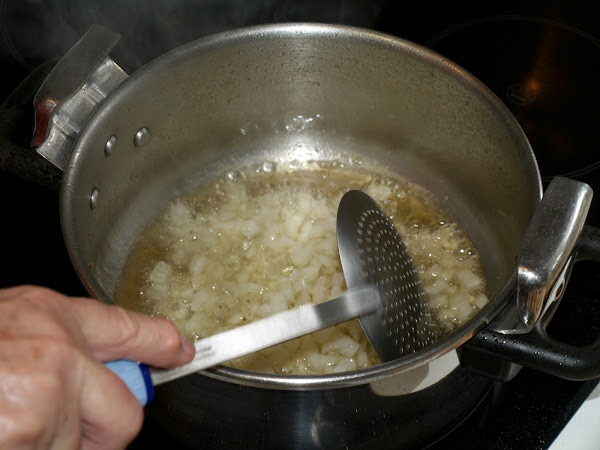 - En ese aceite (añadir más si fuera necesario) ponemos a dorar la cebolla.