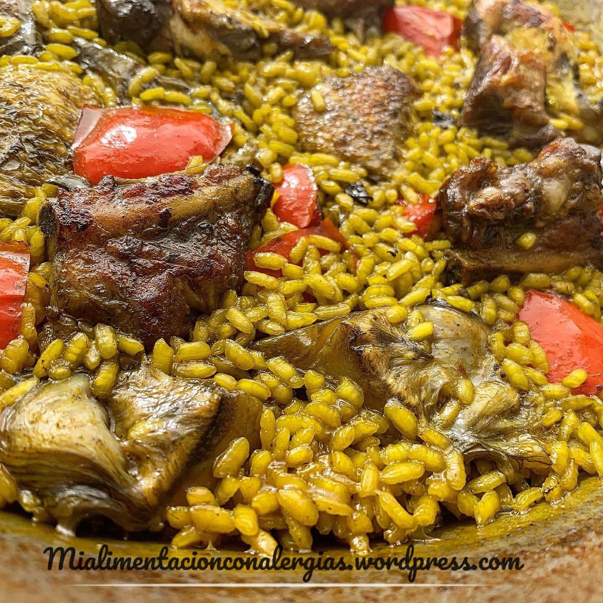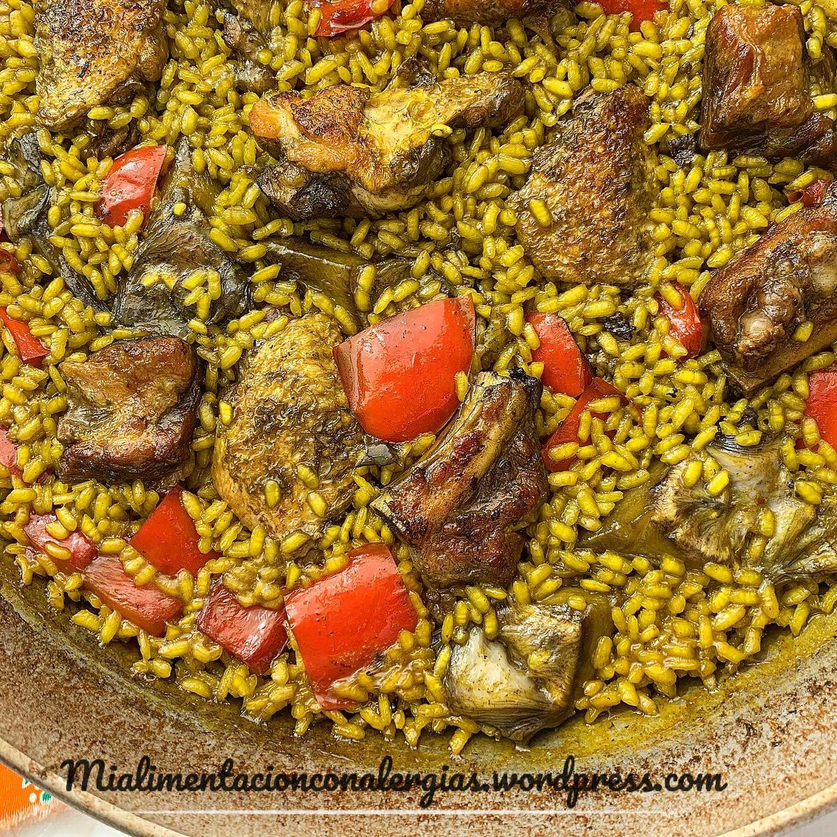 Le añadimos la infusión de azafrán y el caldo de pollo / verdura ó agua. Ponemos el fuego a máxima potencia, dejamos que hierva unos 5-10 minutos y añadimos el arroz, cocinamos los 5 primeros minutos a fuego fuerte, los siguientes 5 a fuego medio y los restantes a fuego bajo.