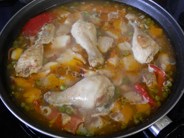 Añade el arroz y deja cocer durante 18 - 20 minutos.