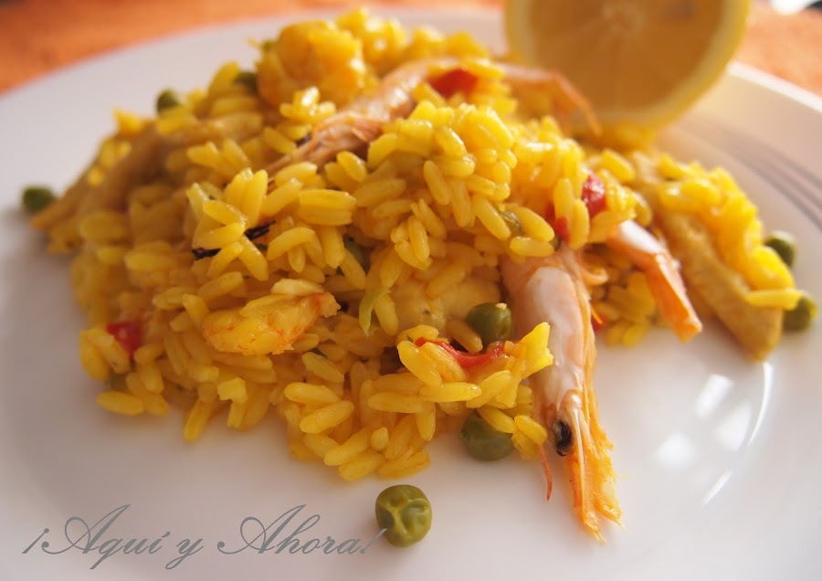Hacía tiempo que no hacía este arroz con pollo y gambas, esta vez incluí en la receta un majado con especias como cuando me lo comía desde bien pequeñita, que era mi arroz favorito, me encantaba el aroma y el sabor que dejaba las especias en el arroz.