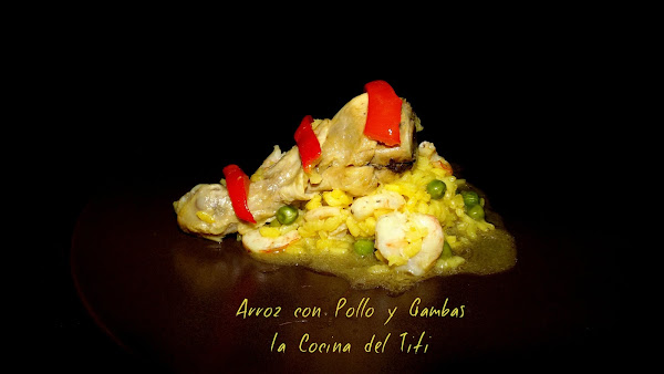 Hoy nos vamos con un arroz muy rico por lo bien que entremezcla el sabor del pollo con el de un marisco como es la gamba. Ademas le vamos acompañar con dos verduras que acompañan de lujo en un arroz y son los guisantes y morrones.