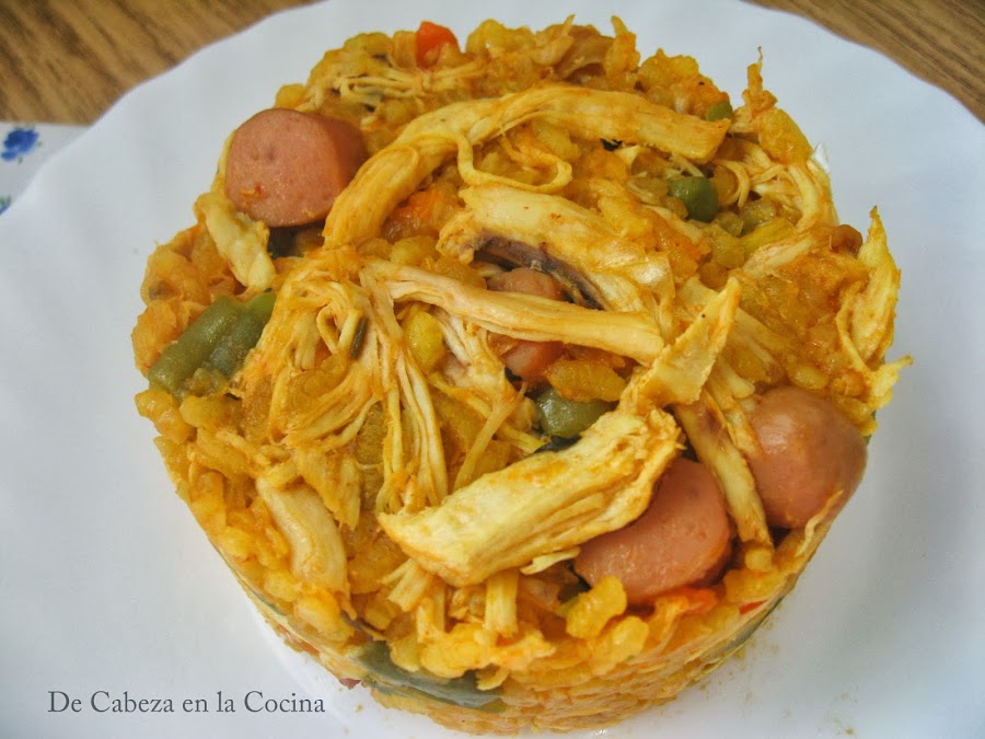 Yo acostumbro a comprarlo entero que así sale mas barato, saco la parte que quiero y la otra la guardo para una próxima receta y así hice con la receta de hoy. Le he robado a un pollo la pechuga y para variar un poco he preparado un arroz con pollo al estilo de mi tierra, que os quiero enseñar por que esta delicioso, ademas de sencilla y rapida esta receta, esta muy bien de precio. Con estas proporciones, tuve 5 comensales en la mesa y todos bien servidos.