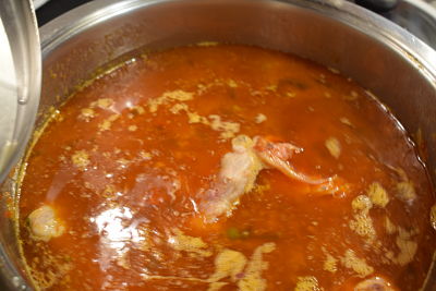 Cubre de agua y sigue cociendo hasta que el pollo esté tierno.