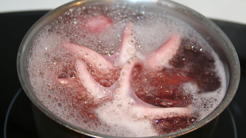 Los pulpitos se cuecen sumergidos en agua sazonada hirviendo durante unos 20 minutos.