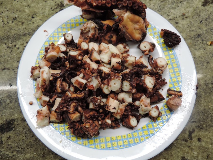 800 grs. Pulpo cocido ( yo he usado la cabeza y alguna de las patas, el resto del pulpo lo he usado en otra receta).