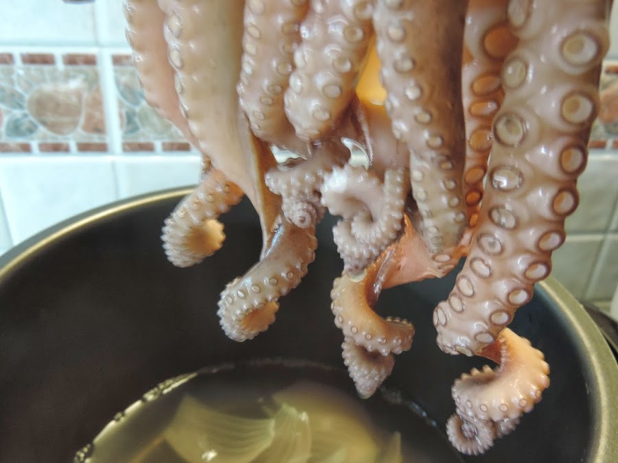 Cojemos el pulpo y lo sumergimos 3 o 4 veces.