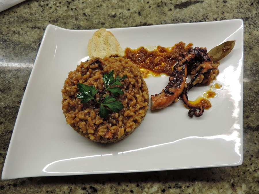 Adornamos en un lado con la pata de pulpo entera que habíamos reservado, perejil y laurel.