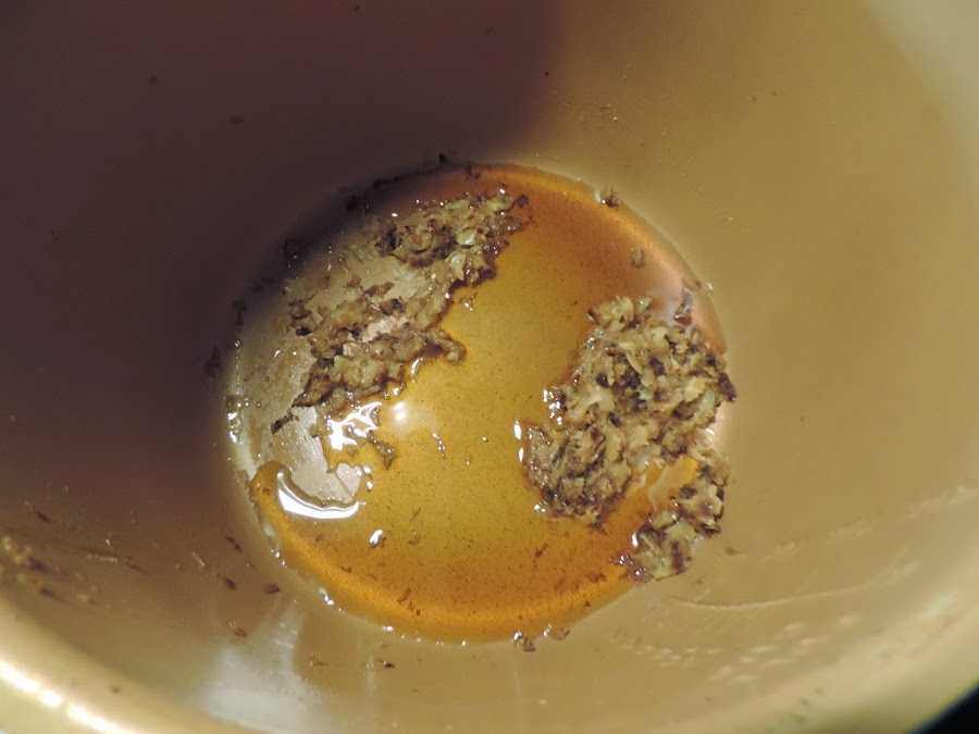 Cuando esté dorada añadimos los ajos cortados y la guindilla.