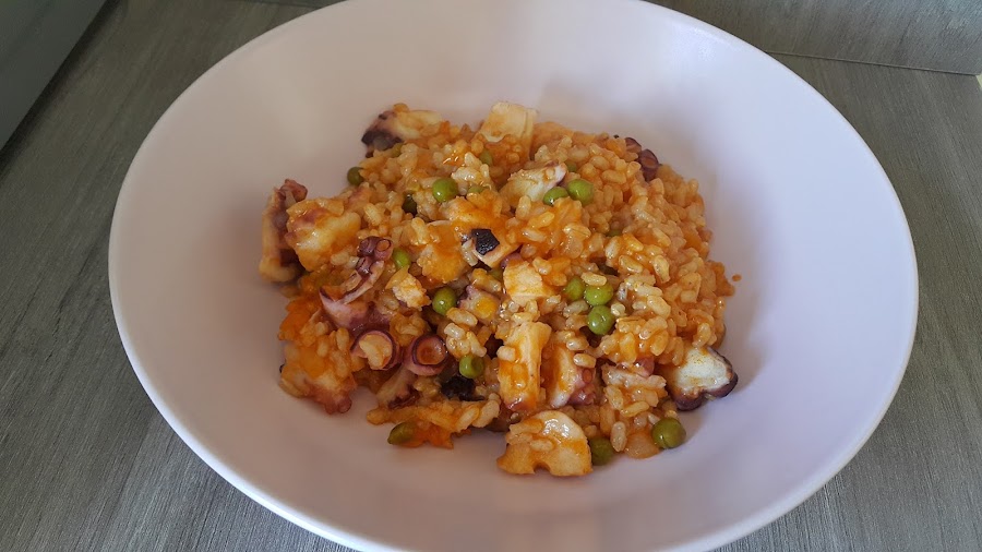 Y éste sería el resultado, un plato de arroz con pulpo sin complicaciones.