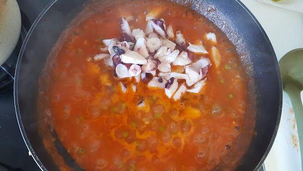 Cuando falten unos 5 minutos agregaremos el pulpo para que coja temperatura.
