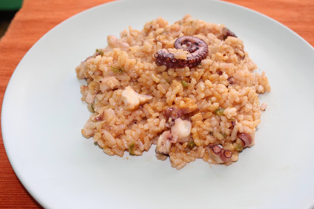 Este mes el desafío que nos plantea Carolina del blog blog Tomillo, laurel y otras cosas de comer consiste en preparar Paellas o arroces. Yo me decante por este plato que he comido junto con mi familia varias veces en un restaurante de Gijón llamado A Feira do Pulpo (os recomiendo el sitio, se come muy bien y el trato es excelente).