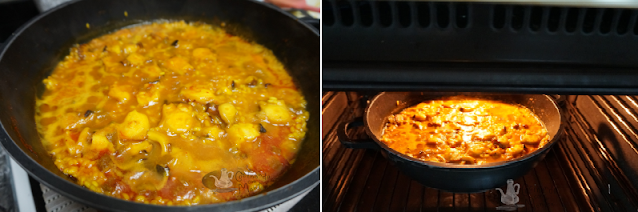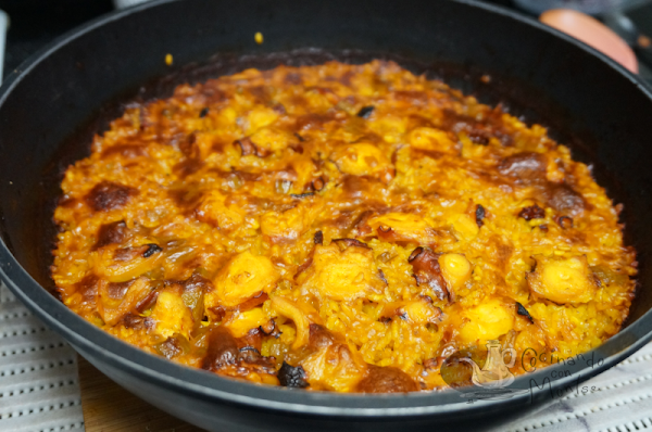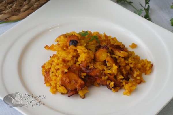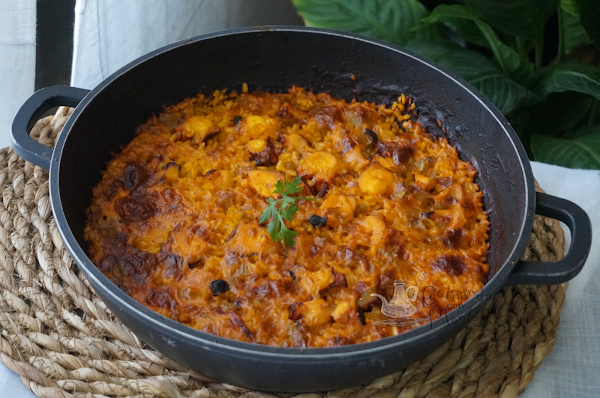 Para terminar este arroz, lo he metido al horno, últimamente lo hago así ya que me queda muy bueno y se hace muy bien por todo, a veces es difícil que quede el arroz en su punto si el fuego no le da por todo igual, si os pasa lo mismo que el arroz no se os cuece por todo igual cuando tenéis que hacer para más personas hacerlo en el horno, el resultado es genial y encima si te gusta lo puedes dejar que se tueste un poquito, no hay nada peor que comer un arroz blando o duro a la vez porque no se ha hecho bien.