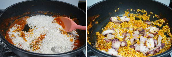 Si cocéis vosotr@s el pulpo, el caldo que suelta será ideal para el arroz.