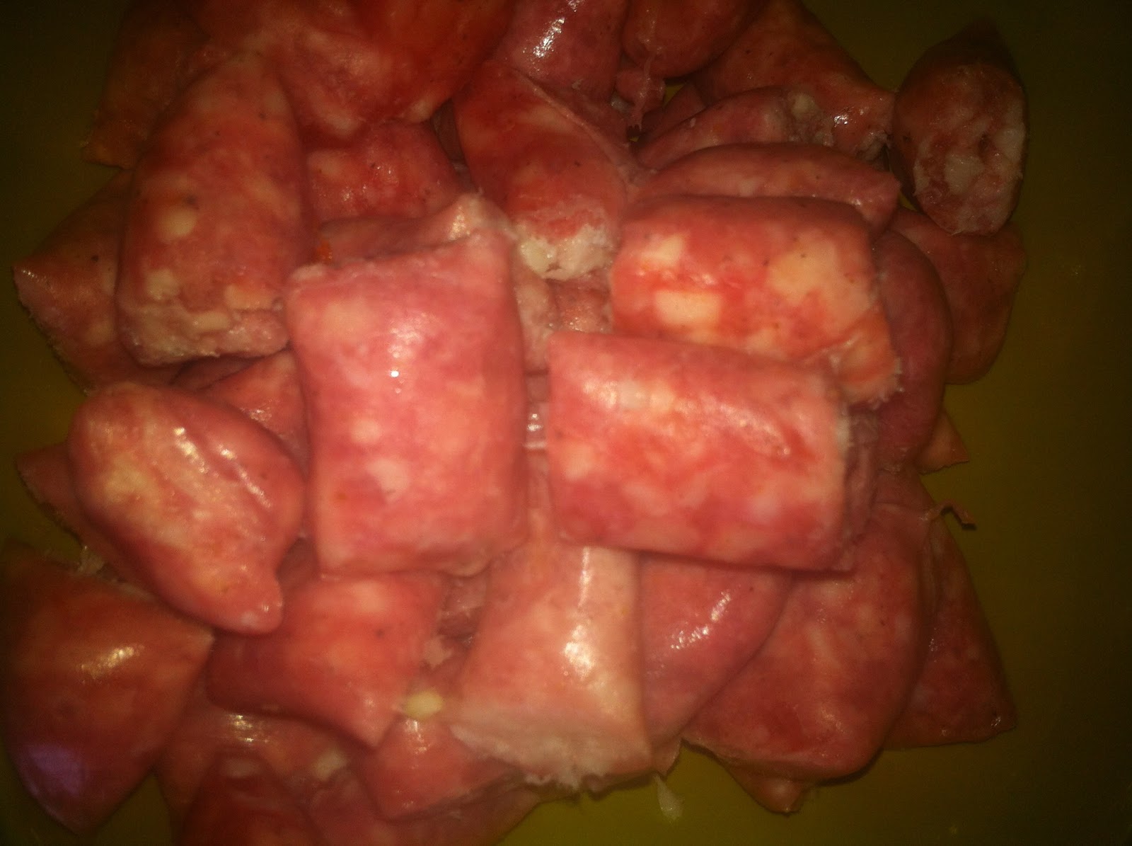 El resultado...buenísimo! Yo he utilizado en esta receta salchichas de pollo, pero podéis utilizar las de cerdo, las que más os gusten.