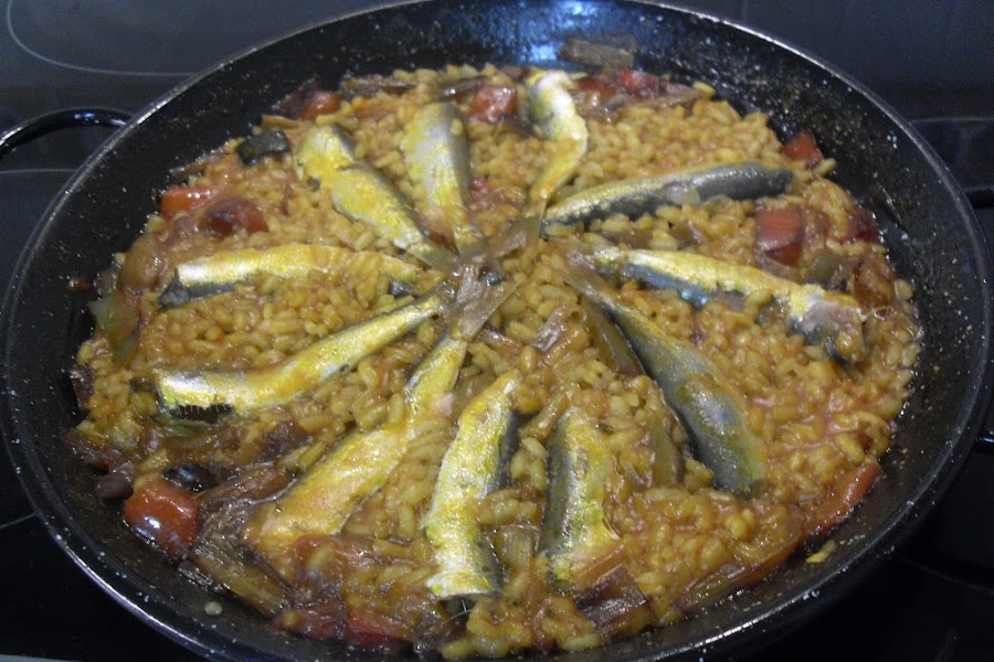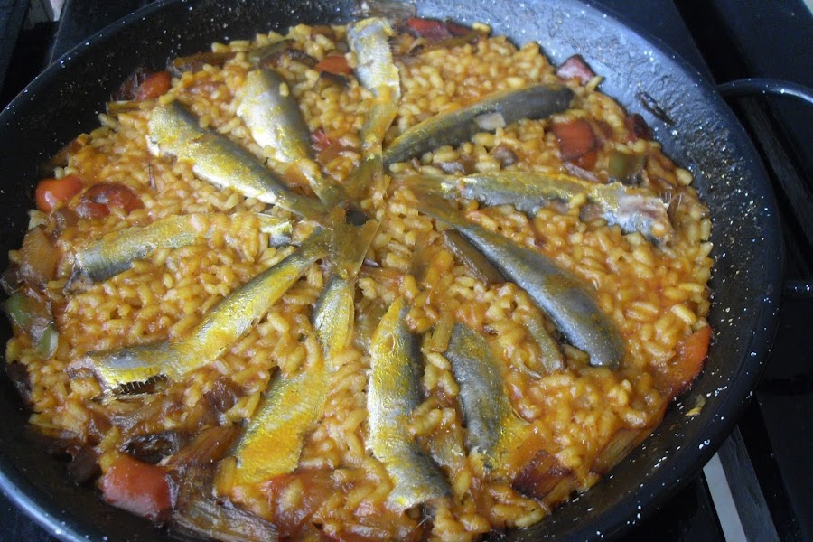 La he preparado, un poco a mi manera, me gusta más bien seco, y con los ingredientes que tenia en ese momento. Las sardinas eran tan frescas y no muy grandes, perfectas para el arroz.