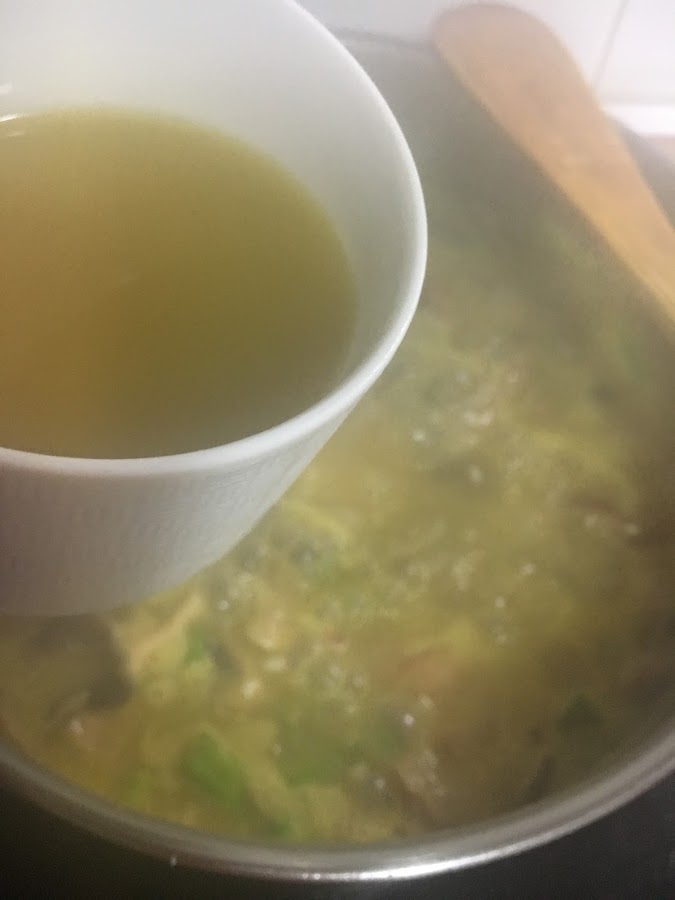Se añade el caldo, se rectifica de sal, baja el fuego y se deja que se cocine durante unos 20 minutos.