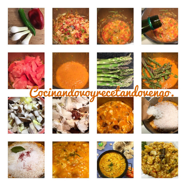 Hola a tod@s!! Hoy vamos a disfrutar mucho con este arroz lleno de sabor a otoño, estamos en temporada de setas y afortunadamente vivo cerca de un entorno precioso llamado Sierra Bermeja, un lugar extraordinario y único que merece la pena visitar y disfrutar. Tengo la suerte que mi marido junto con su primo, estuvieron cogiendo setas y trajeron un amplio y delicioso surtido, yo soy una apasionada de las setas en general, así que os podréis imaginar como se me pusieron los ojos al ver estas maravillas ;) Esta receta es una delicia, pueden incluirse más o menos ingredientes, yo hice un buen sofrito y unos espárragos junto con el surtido de setas y quedó un arroz lleno de sabor a naturaleza, si no se tienen este tipo de setas o no es temporadas, puedes comprarlas ya que facilmente podemos encontrarlas a lo largo de todo el año y elegir el surtido que más os guste.