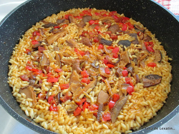 Pero a lo que vamos, como aquí los gurumelos "ni están ni se les espera" me lo tuve que montar con unas setas deshidratadas que acababa de comprar y dicho sea de paso me sorprendieron por lo buenas que estan y el sabor que aportan, pensaba que al deshidratarse perdían todo el sabor y estaba muy equivocada, vamos, que ya tengo varios botes de "fondo de armario"