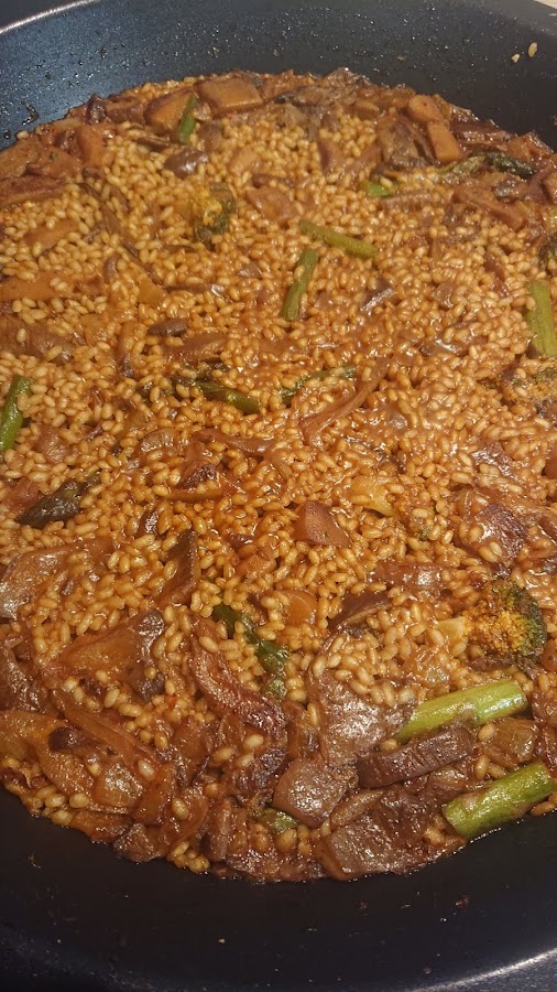 Yo cocino en inducción y ya se sabe que los buenos arroces necesitan sentir la llama. Pero cada uno en su casa hace lo que puede. El resultado es bastante notable, pero estad siempre al loro, que el fuego cubra la paella bien para que se haga todo por igual, o ir girando el recipiente para que todo pueda cocer de forma uniforme. Eso es CLAVE.