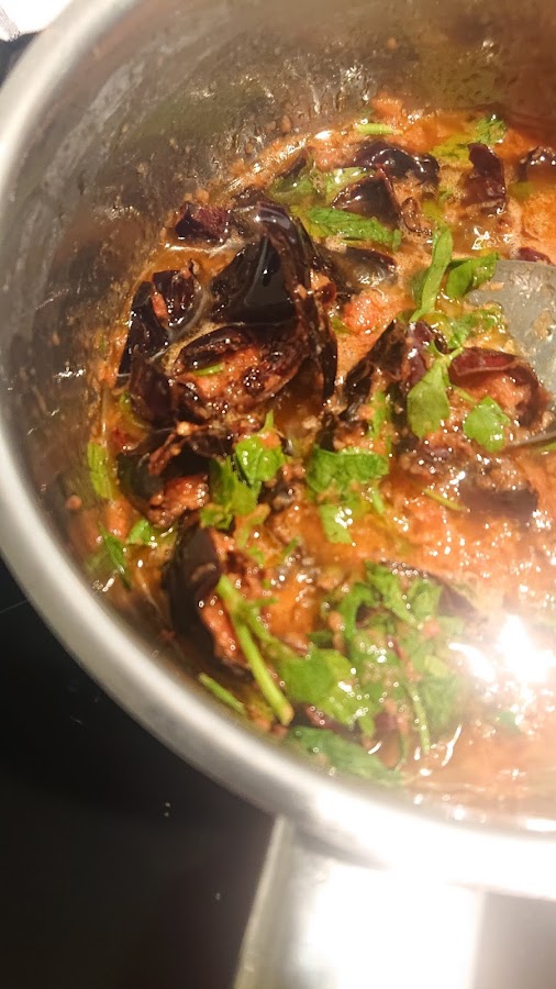 Echamos una cucharada de un buen pimentón de la Vera y removemos con energía para evitar que se queme. Turno de la salmorreta: 3-4 cucharadas y a mezclar, que vaya aromatizando al resto de ingredientes y tintando de su particular y soberbio color las verduras.