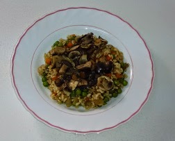 Reparte el arroz con verduras en 2-3 platos y distribuye encima las setas.